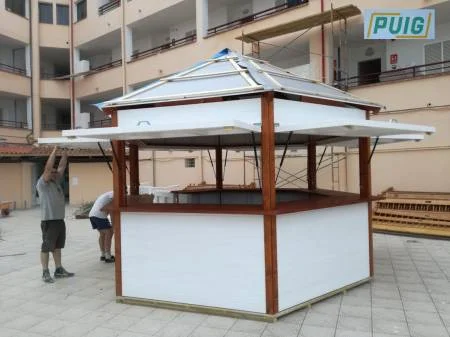 MONTAJE DE UN CHIRINGUITO, nuestros chiringuitos pueden ser fijos, desmontables o transpotables, en un solo modulo o varios modulos, el funcion de las medidas y siempre pensando en un transporte con camion normal, huyendo asi de los transportes especiales, en estas fotos podemos observar como montamos un chiringuito en la playa, el cual al final de la campaña se trasportara sin ser desmontado.